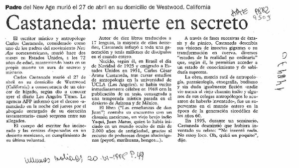 Murió Carlos Castaneda, gurú del New Age [artículo].