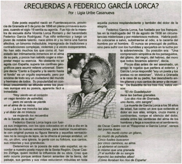 ¿Recuerdas a Federico García Lorcas? [artículo] Ligia Uribe Casanueva.