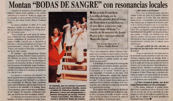 Montan "Bodas de sangre" con resonancias locales [artículo] Javier Ibacache V.