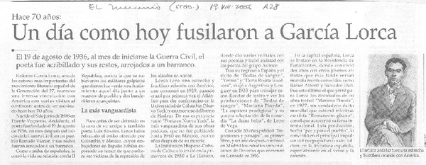Un Día como hoy fusilaron a García Lorca [artículo]