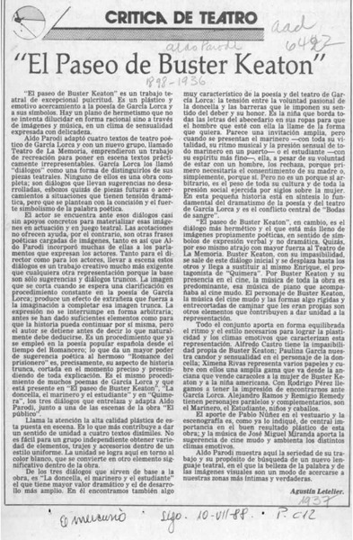 "El paseo de Buster Keaton" [artículo] Agustín Letelier.