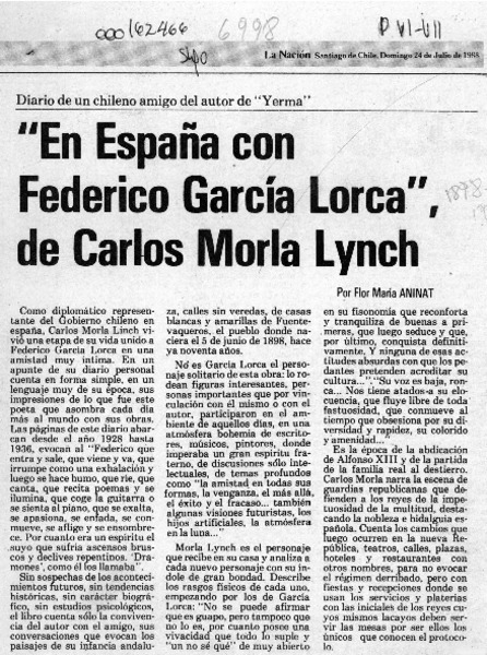 "En España con Federico García Lorca" de Carlos Morla Lynch [artículo] Flor María Aninat.