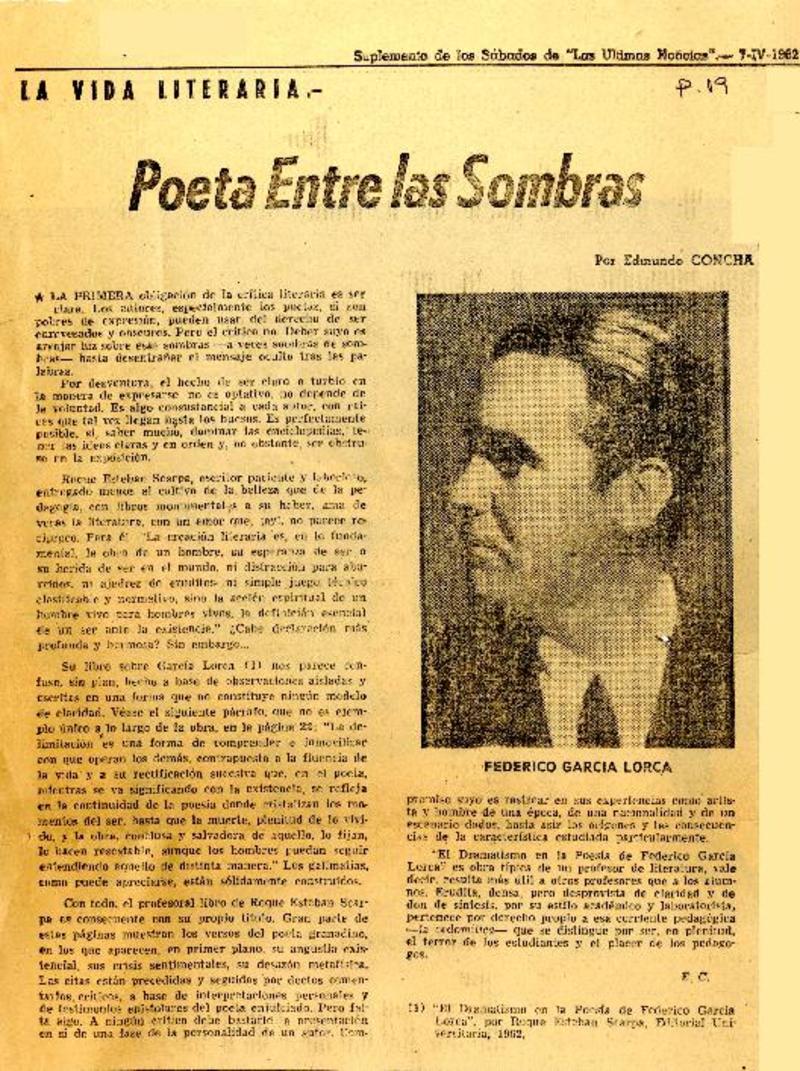 Poeta entre las sombras [artículo] Edmundo concha.