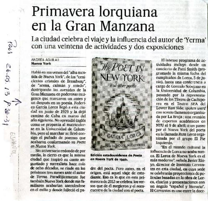 Primavera lorquiana en la gran manzana [artículo] Andrea Aguilar.