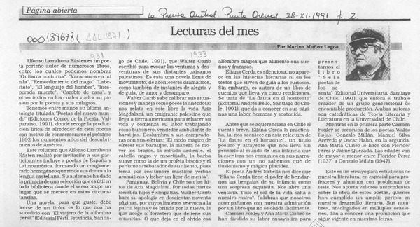 Lecturas del mes [artículo] Marino Muñoz Lagos.