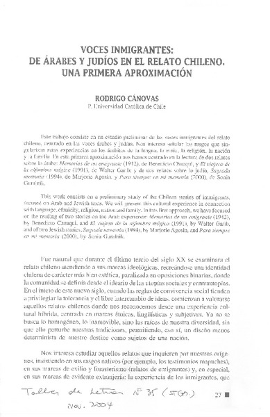Voces inmigrantes [artículo] Rodrigo Cánovas.