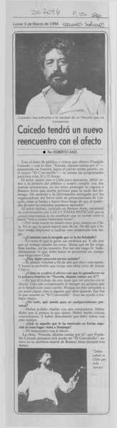 Caicedo tendrá un nuevo reencuentro con el afecto [artículo] Roberto Sáez.