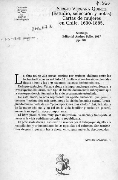 Cartas de mujeres en Chile, 1630-1885 [artículo] Regina Claro.