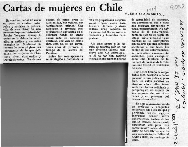 Cartas de mujeres en Chile [artículo] Alberto Arraño.