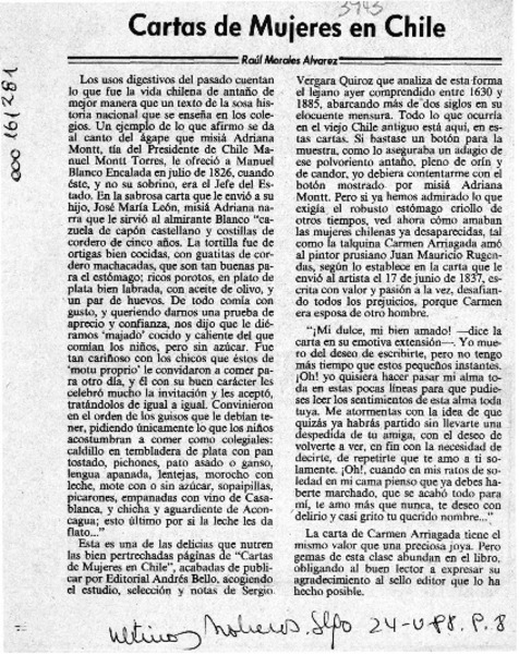 Cartas de mujeres en Chile [artículo] Raúl Morales Alvarez.