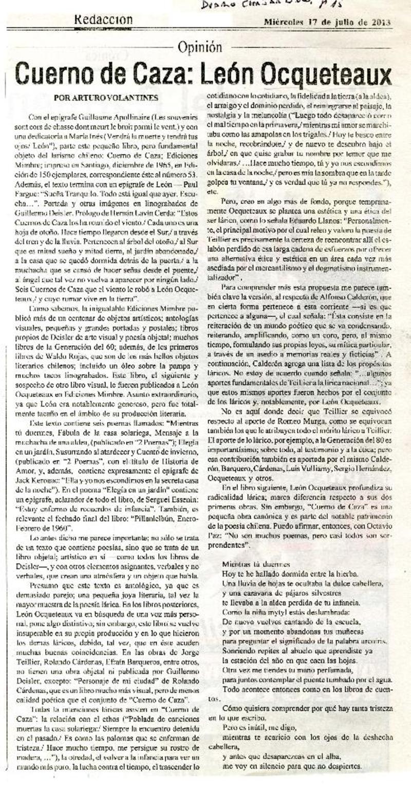 Cuerno de Caza: León Ocqueteaux [artículo] Arturo Volantines