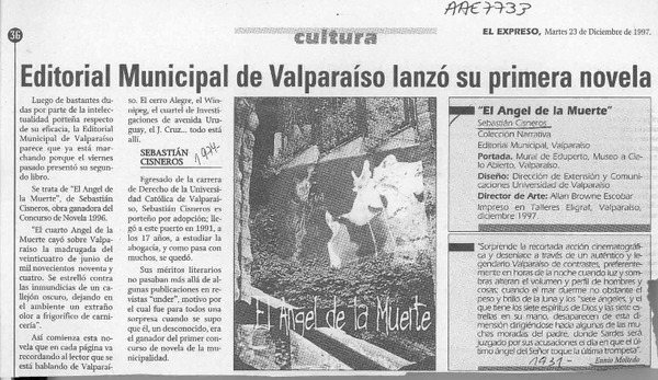 Editorial Municipal de Valparaíso lanzó su primera novela [artículo] Ennio Moltedo.