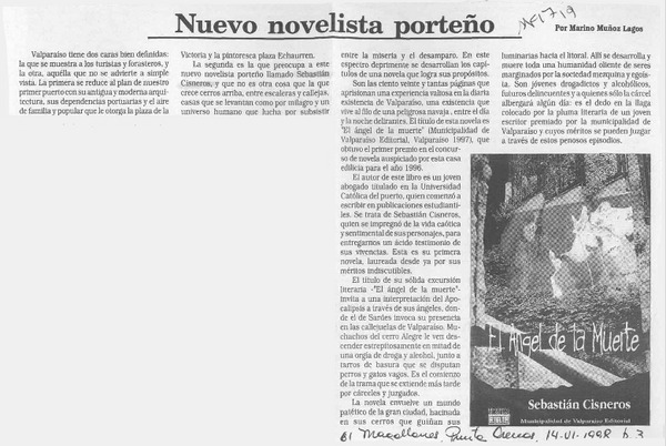 Nuevo novelista porteño [artículo] Marino Muñoz Lagos.