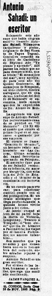 Antonio Sahadi, un escritor [artículo] Jaime Vásquez A.