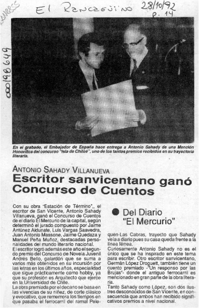 Escritor sanvicentano ganó concurso de cuentos [artículo].
