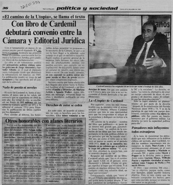 Con libro de Cardemil debutará convenio entre la Cámara y Editorial Jurídica [artículo]