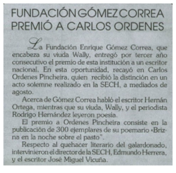 Fundación Gómez Correa premió a Carlos Ordenes [artículo]