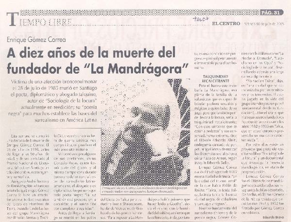 Enrique Gómez Correa : a diez años de la muerte del fundador de "La Mandrágora" [artículo]
