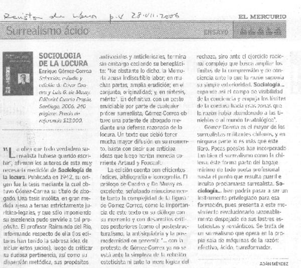 Autores chilenos - Gómez-Correa, Enrique - Sociología de la locura