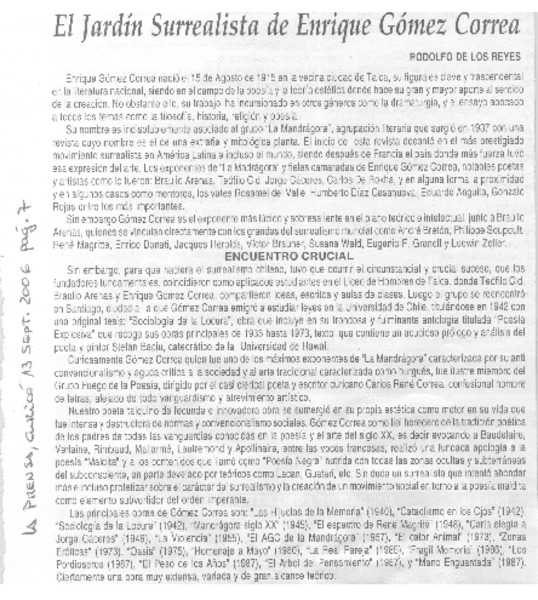 El jardín surrealista de Enrique Gómez Correa [artículo] Rodolfo de los Reyes.