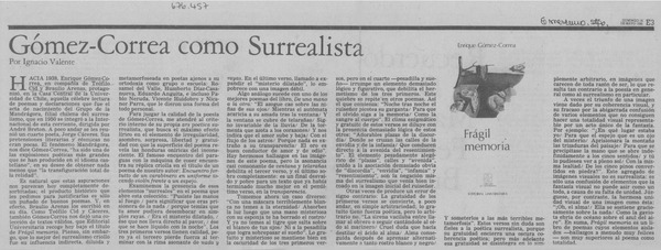 Gómez-Correa como surrealista [artículo] Ignacio Valente.