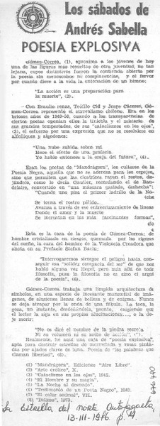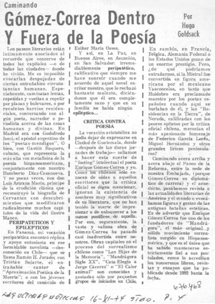 Gómez-Correa dentro y fuera de la poesía [artículo] Hugo Goldsack.
