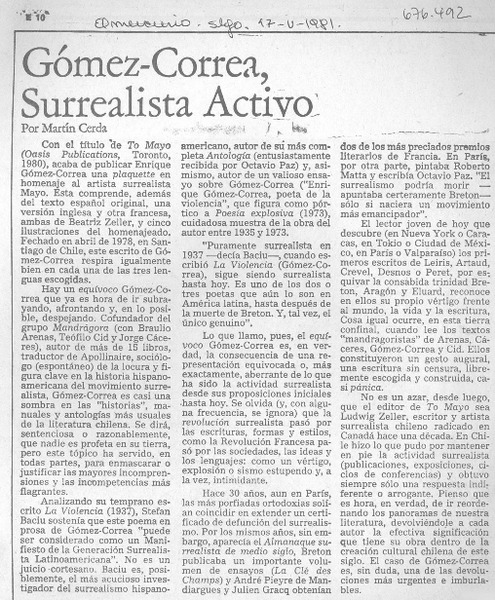 Gómez-Correa, surrealista activo [artículo] Martín Cerda.