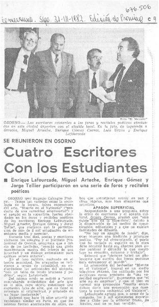 Cuatro escritores con los estudiantes [artículo] Eugenio Calcagno Freire.