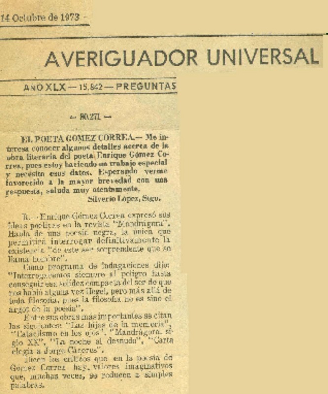 Enrique Gómez Correa. [artículo] Martín Pescador.