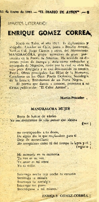 Enrique Gómez-Correa: el último "Mandragórico" [artículo] Enrique Lafourcade.
