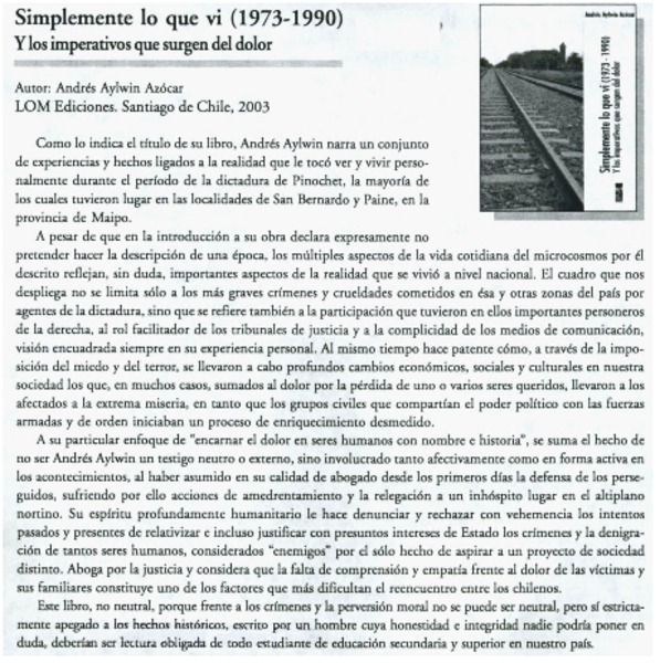 Nuevo libro de Andrés Aylwin [artículo]