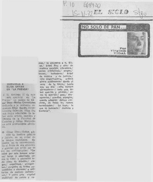 Homenaje a Elisa Gayan en "La Prensa" [artículo] Virginia Vidal.