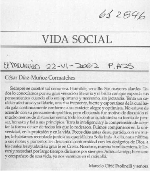 César Díaz-Muñoz Cormatches [artículo] Marcelo Cibie Paolinelli