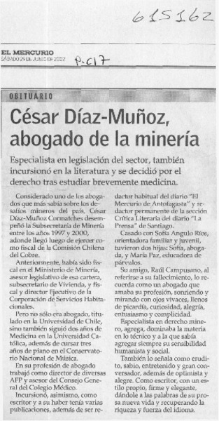 César Díaz-Muñoz, abogado de la minería [artículo]