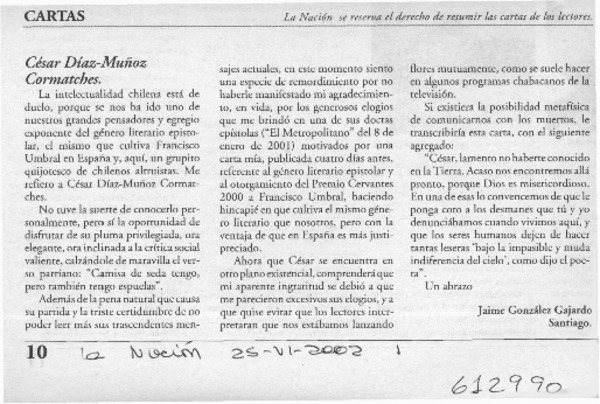 César Díaz-Muñoz Cormatches [artículo] Jaime González Gajardo