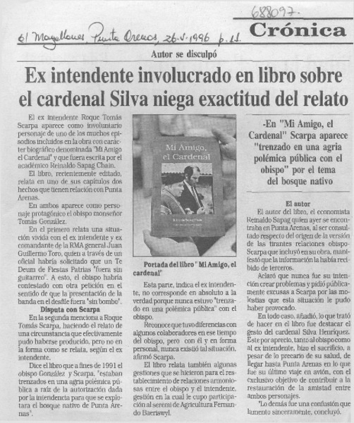Ex intendente involucrado en libro sobre el Cardenal Silva niega exactitud del relato. [artículo]