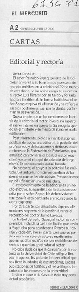 Editorial y rectoría [artículo] Sergio Villalobos R.