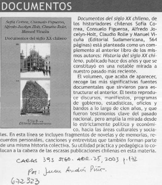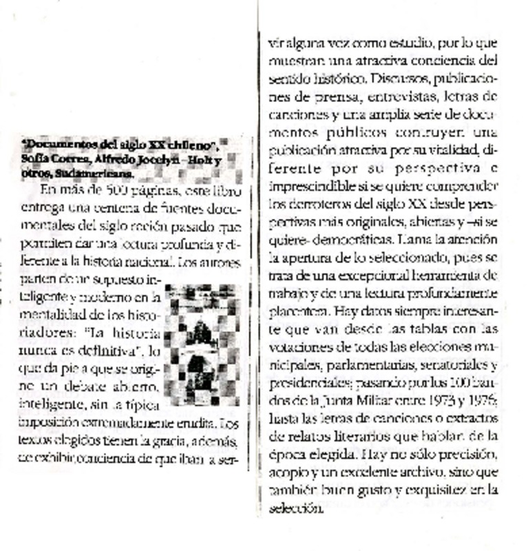 Autores chilenos - Jocelyn-Holt, Alfredo - Correa S., Sofía - Documentos del siglo XX chileno