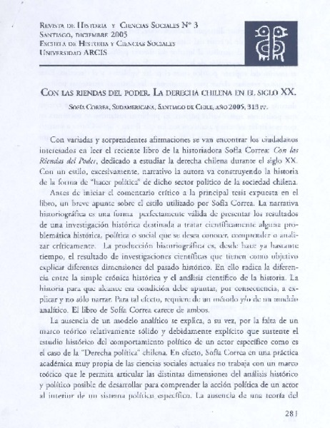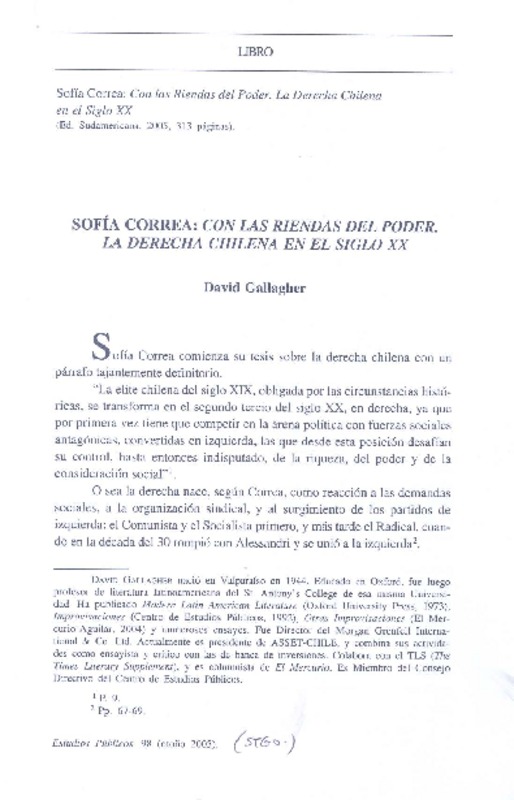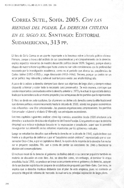 Correa Sutil Sofía : Con las riendas del poder : la derecha chilena en el siglo XX [artículo] Ricardo Gamboa.
