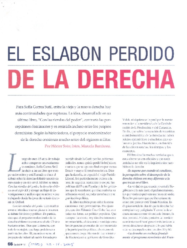 El eslabón perdido de la derecha (entrevista) [artículo] Héctor Soto.