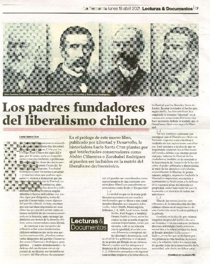 Autoras chilenas - Autores chilenos - Correa S., Sofía - García, José Francisco - Los padres fundadores del liberalismo chilenos - Couyoumdjian, Juan Pablo - Gómez Andino, Jorge A. - Santa Cruz, Lucia