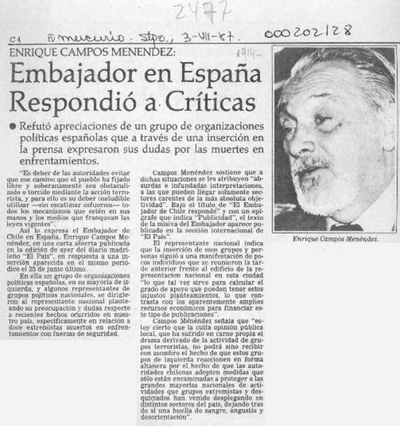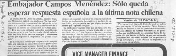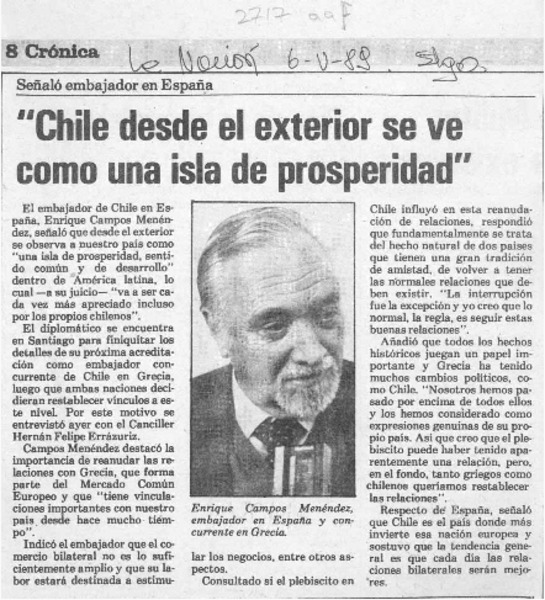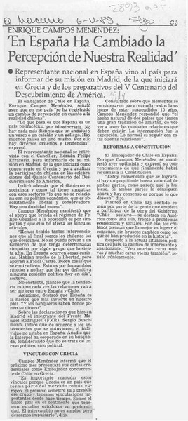 Campos Menéndez difundirá proceso democrático chileno [artículo].