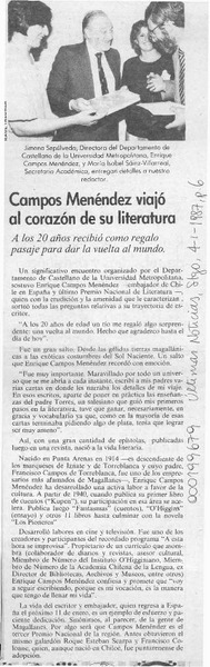 Campos Menéndez viajó al corazón de su literatura [artículo].