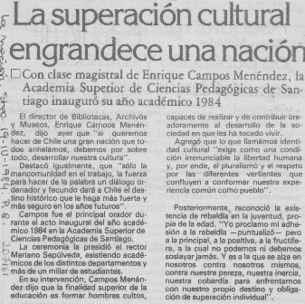 Academia chilena recibió a Enrique Campos Menéndez. [artículo]