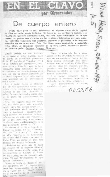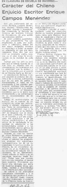 Carácter del chileno enjuició escritor Enrique Campos Menéndez. [artículo]
