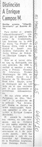 Distinción a Enrique Campos Menéndez [artículo] Alfonso Reveco Vincens.