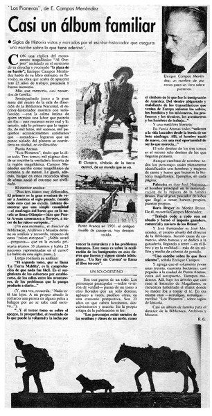 Autor de "Los pioneros" cree que se ha perdido el empuje netamente magallánico [artículo] J. M. Mella.