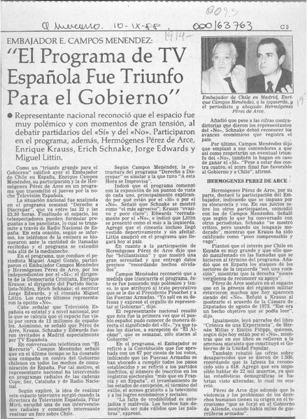 "El Programa de TV española fue triunfo para el gobierno" [artículo].