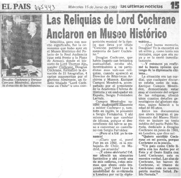 Tataranieto donó valiosos documentos de Lord Thomas Cochrane. [artículo]