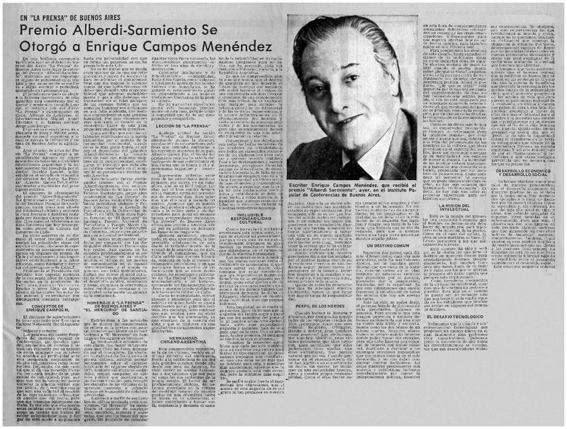 Premio Alberdi-Sarmiento se otorgó a Enrique Campos Menéndez. [artículo]